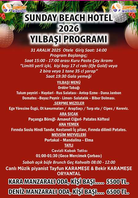 Sunday Beach Hotel Kuşadası Yılbaşı 2026 Menüsü